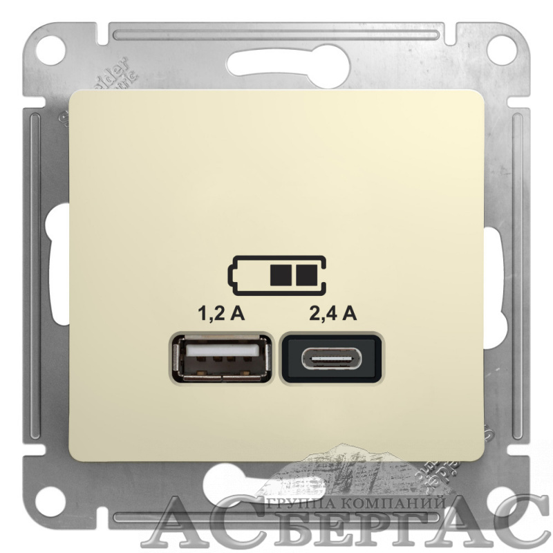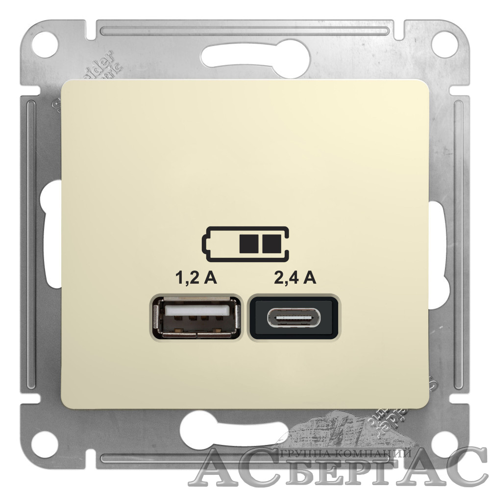 Розетка USB A+С, 5В/2,4А, 2х5В/1,2 А, механизм (бежевый) Glossa Systeme Electric