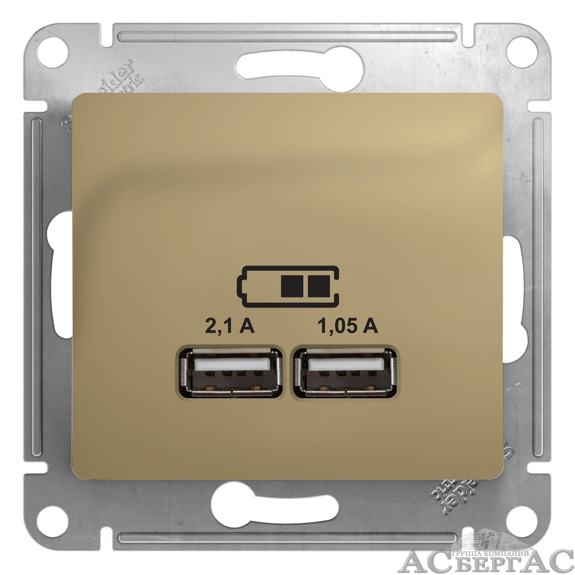 Розетка USB 5в/2100ма, 2х5в/1050ма, механизм (титан) Glossa Systeme Electric