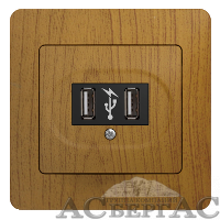 Розетка USB 5в /1400 ма, 2 х 5в /700 ма, механизм (дерево дуб) Glossa Schneider Electric