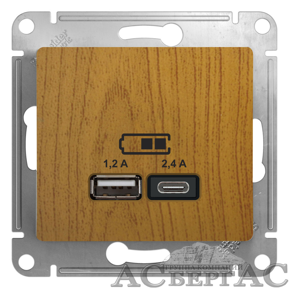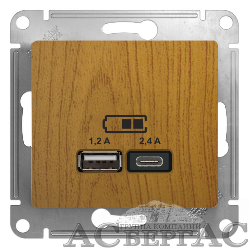 Розетка USB A+С, 5В/2,4А, 2х5В/1,2 А, механизм (дерево дуб) Glossa Systeme Electric