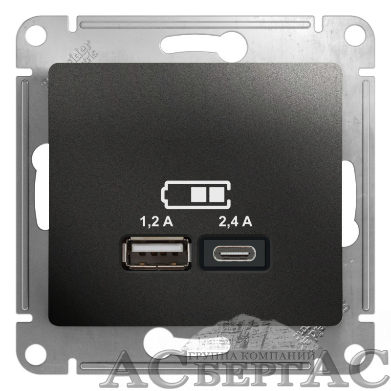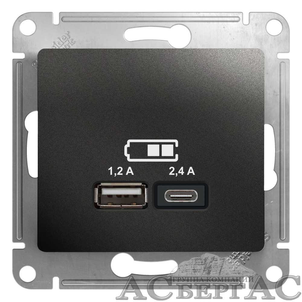 Розетка USB A+С, 5В/2,4А, 2х5В/1,2 А, механизм (антрацит) Glossa Systeme Electric