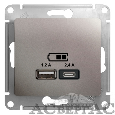 Розетка USB A+С, 5В/2,4А, 2х5В/1,2 А, механизм (платина) Glossa Systeme Electric