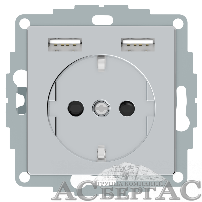 Розетка SCHUKO с 2 USB c зарядным устройством 2,4 a, sm (алюминий) Merten Schneider Electric