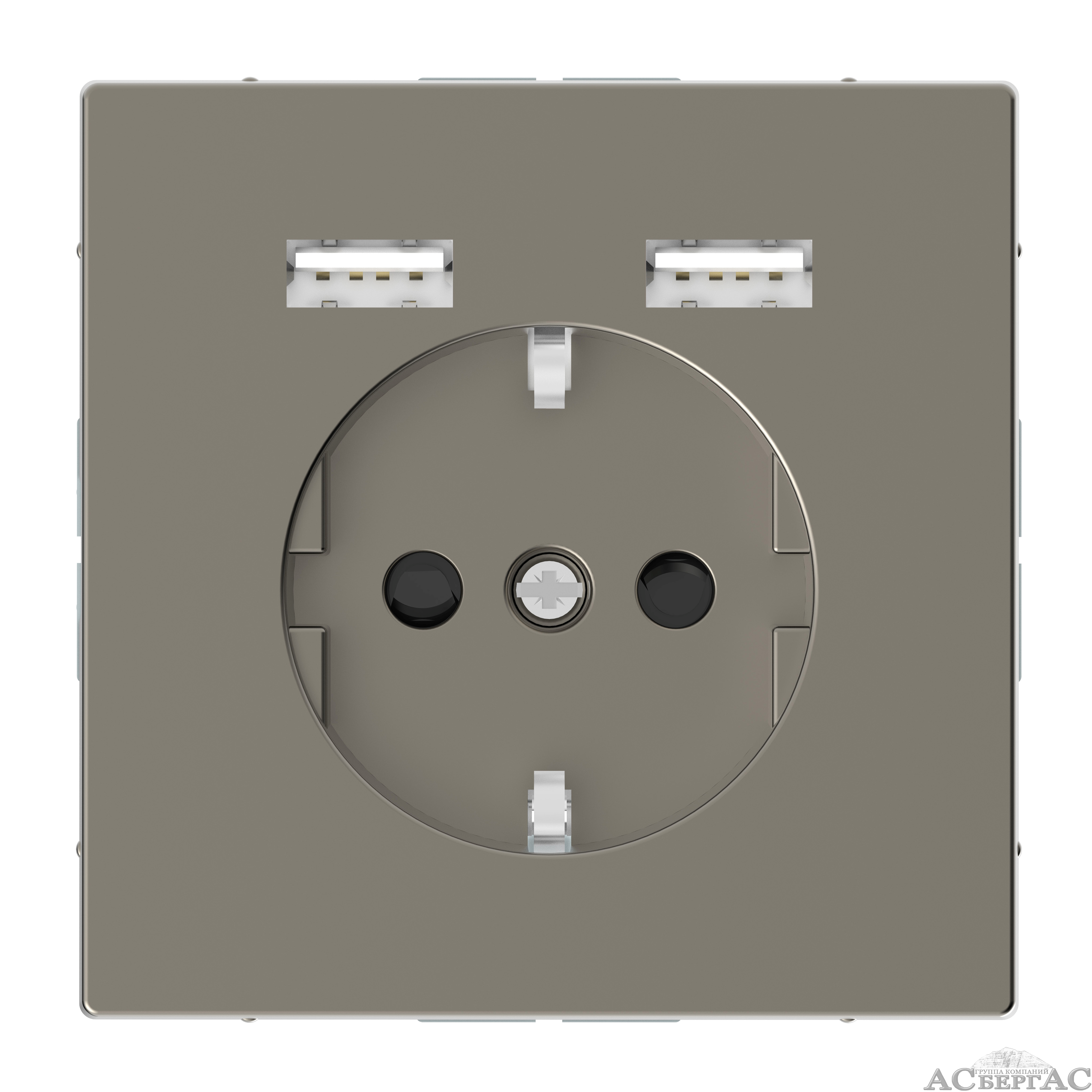 Розетка SCHUKO с 2 USB c зарядным устройством 2,4 a, sdl (никель) Merten Schneider Electric