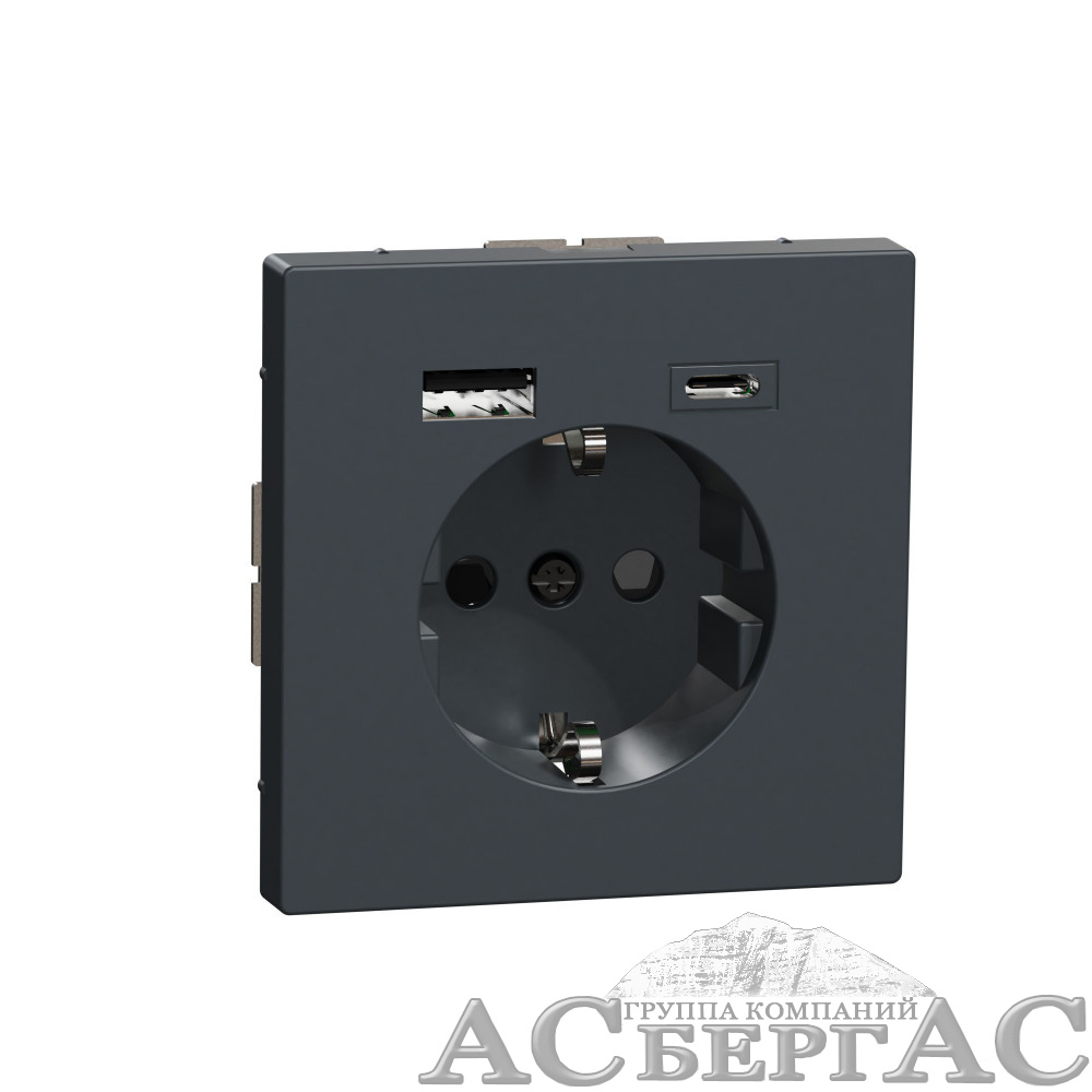 Розетка силовая 16 A с зарядкой USB A+C 3 A (антрацит) Merten D-Life Schneider Electric