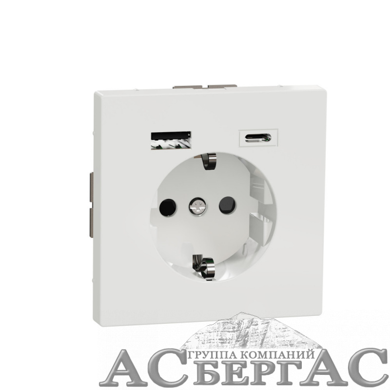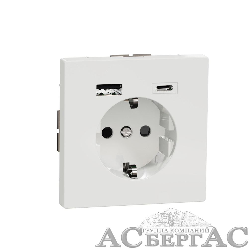 Розетка силовая 16 A с зарядкой USB A+C 3 A (белый лотос) Merten D-Life Schneider Electric