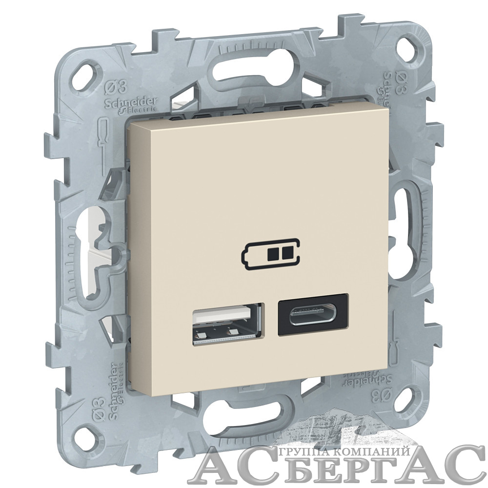 Розетка USB, 2-местная, тип А+С, 5 В / 2400 мА (бежевый) Unica new Schneider Electric