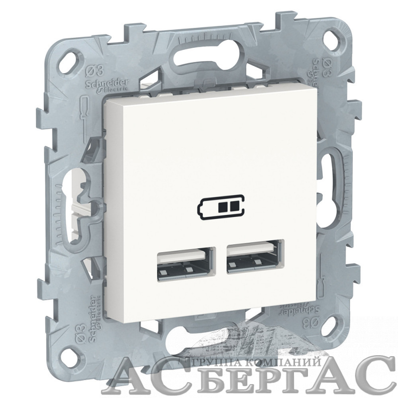 Розетка USB, 2-х местная, 5B/2100ма (белый) Unica New Schneider Electric