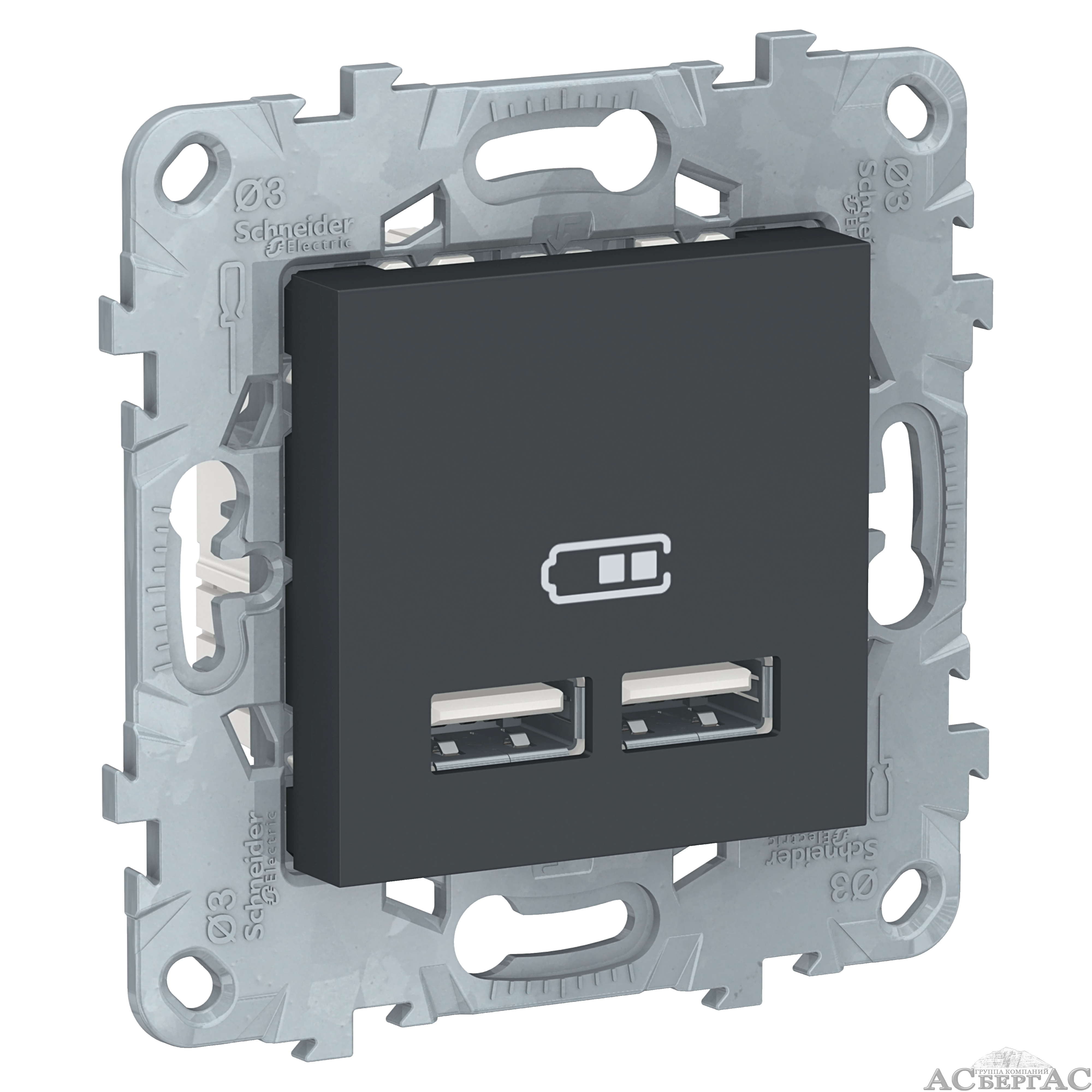 Розетка USB, 2-х местная, 5B/2100ма (антрацит) Unica New Schneider Electric
