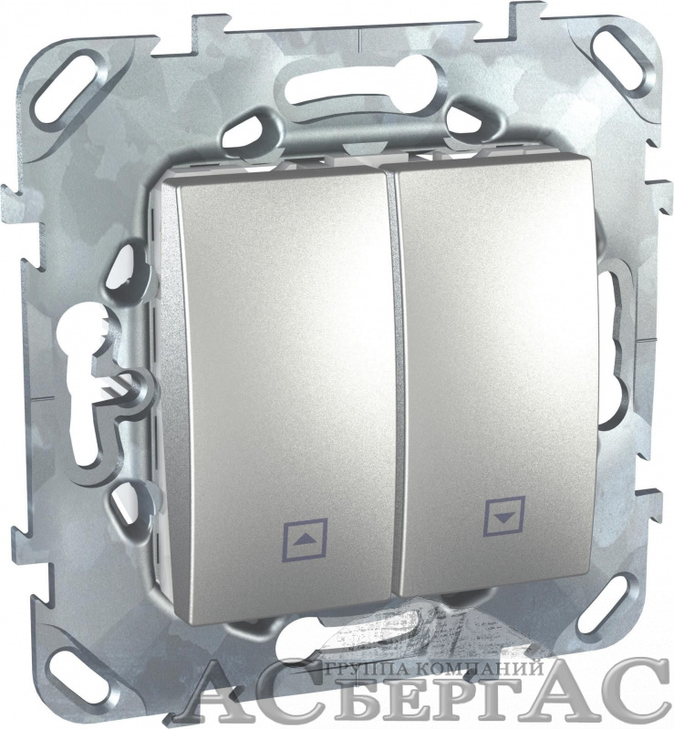- Заменён на:Выключатель 2-клавишный, для жалюзи, без фиксации, 2 х сх.4 (алюминий) Unica New Schneider Electric
