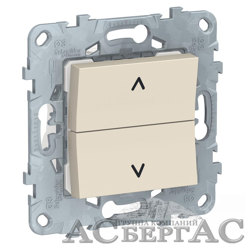 Выключатель для жалюзи, 2-клавишный, кнопочный, 2 х сх. 4, (бежевый) Unica New Schneider Electric