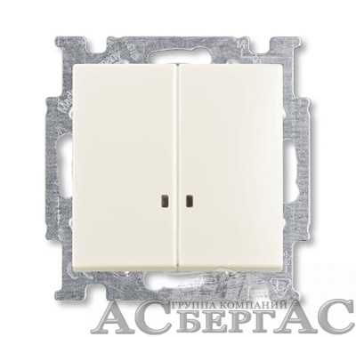 2006/5 UCGL-96 Механизм 2-клавишного, 1-полюсного выключателя с клавишей, с линзой подсветки, с неоновой лампой (chalet-white) Basic 55 ABB