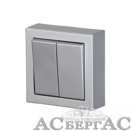 1065A-83 Выключатель двухклавишный, накладного монтажа, Impressivo, 2 доп.клеммы, алюминий ABB