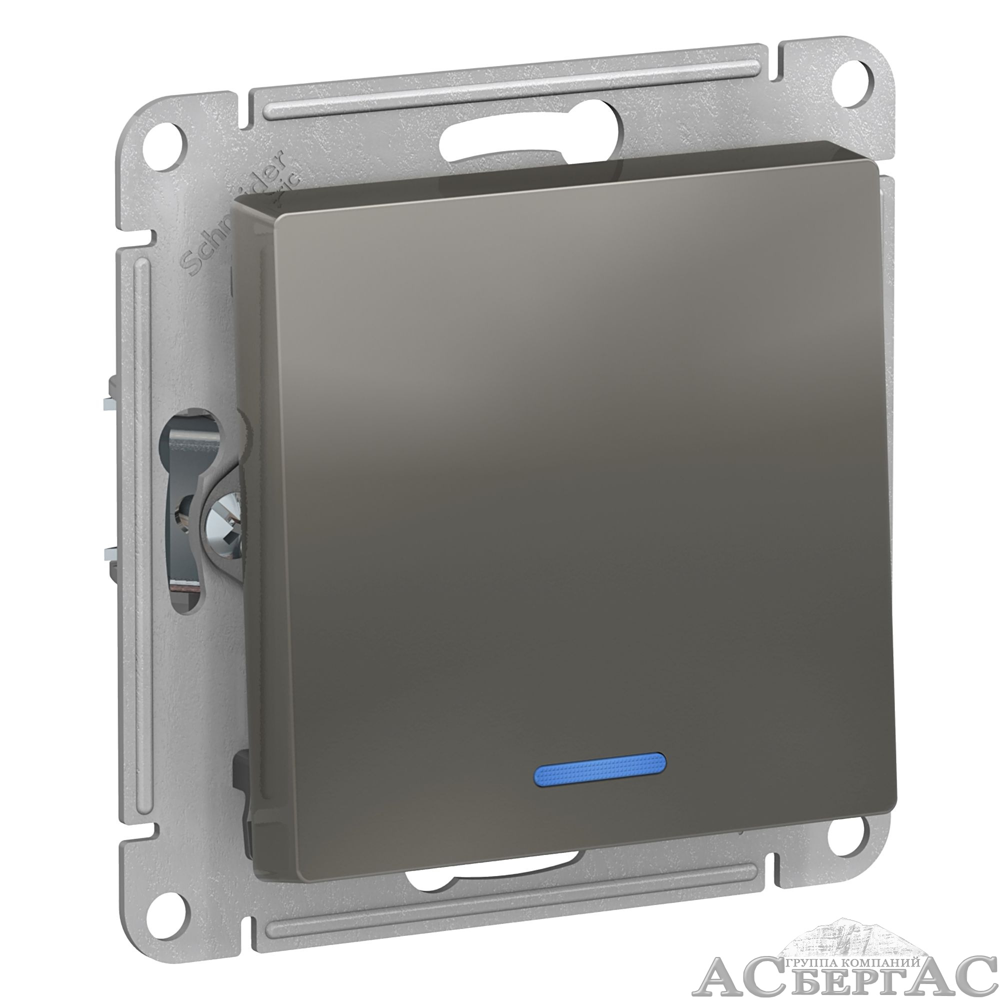 Выключатель1-клавишный с подсветкой, сх.1А, 10АХ, механизм (сталь) Atlas Design Systeme Electric