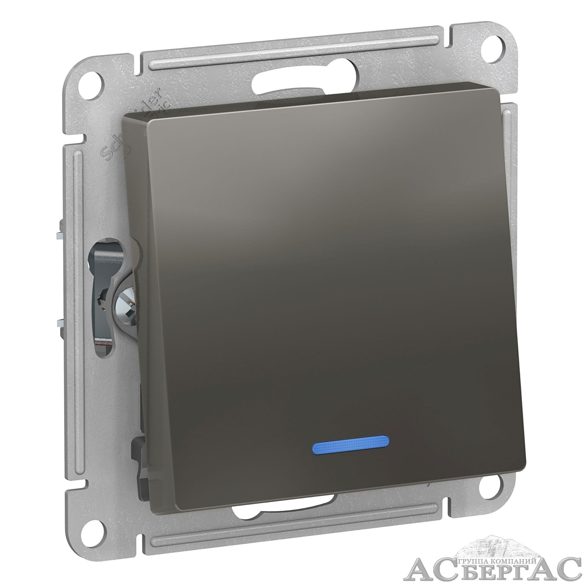 Переключатель1-клавишный с подсветкой, сх.6а, 10АХ, механизам (сталь) Atlas Design Systeme Electric
