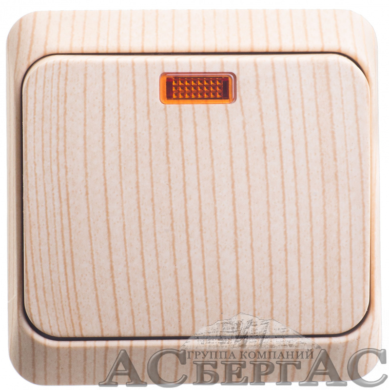 Выключатель 1-клавишный, О/У, с подсветкой 10 ах (сосна) Этюд Systeme Electric