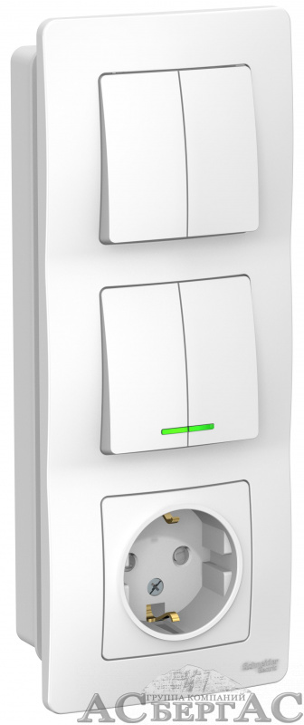 Блок розеточный: Розетка з/к 16А, 250В + выкл 2-кл. с подсв. + выкл 2-кл., С/У, (белый) Blanca Systeme Electric