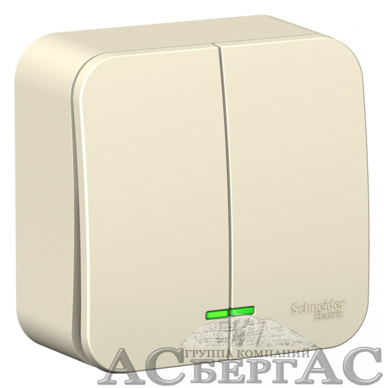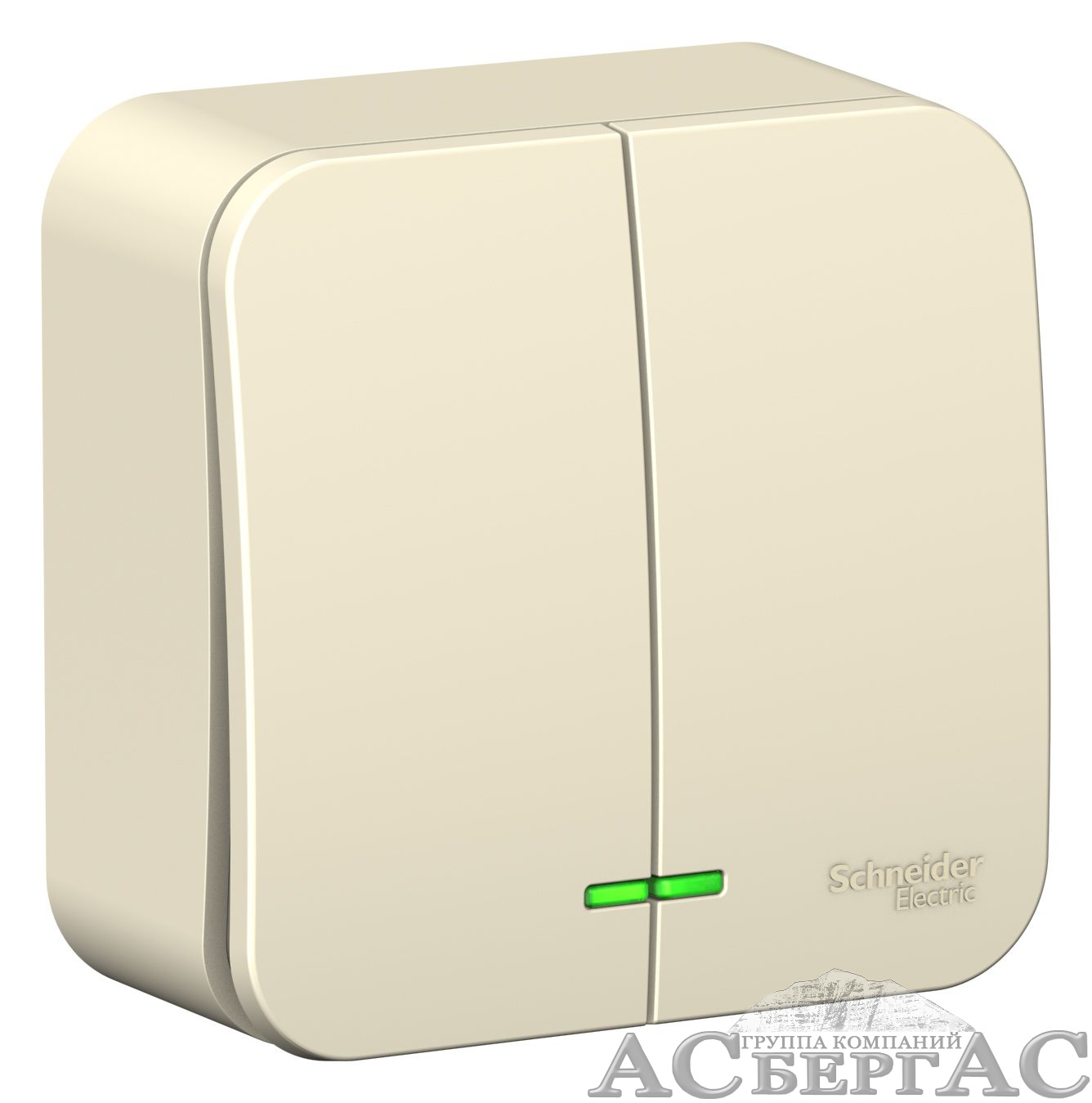 Выключатель 2-клавишный, О/У, (cх.5) с подс.изол.пл,10а,250b (молочный) Blanca Systeme Electric
