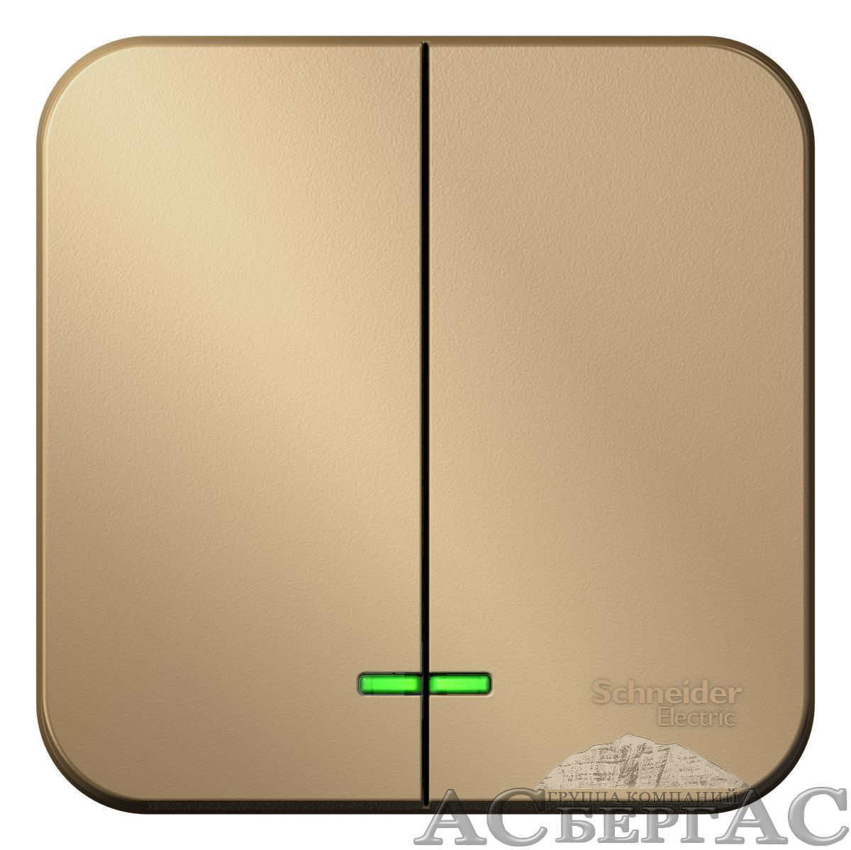 Выключатель 2-клавишный, О/У, (cх.5) с подсв.изол.пл,10а,250b (титан) Blanca Systeme Electric