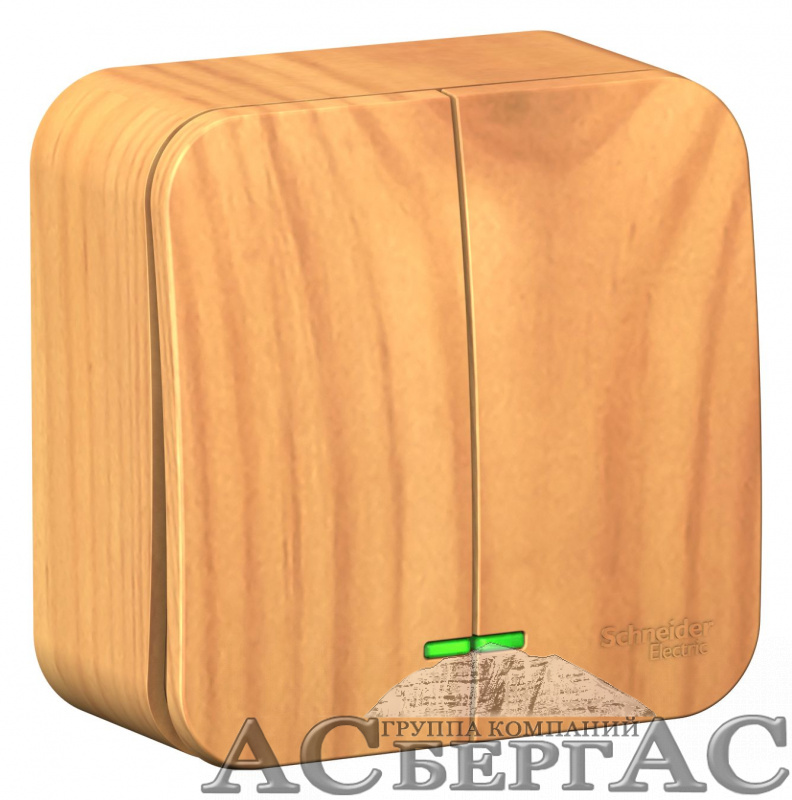 Выключатель 2-клавишный, О/У, (cх.5) с подсв.изол.пл,10а,250b (ясень) Blanca Systeme Electric