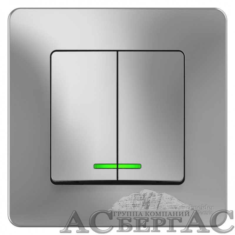 Выключатель 2-клавишный, С/У, (cх.5) с подсв., 10а, 250b (алюминий) Blanca Systeme Electric