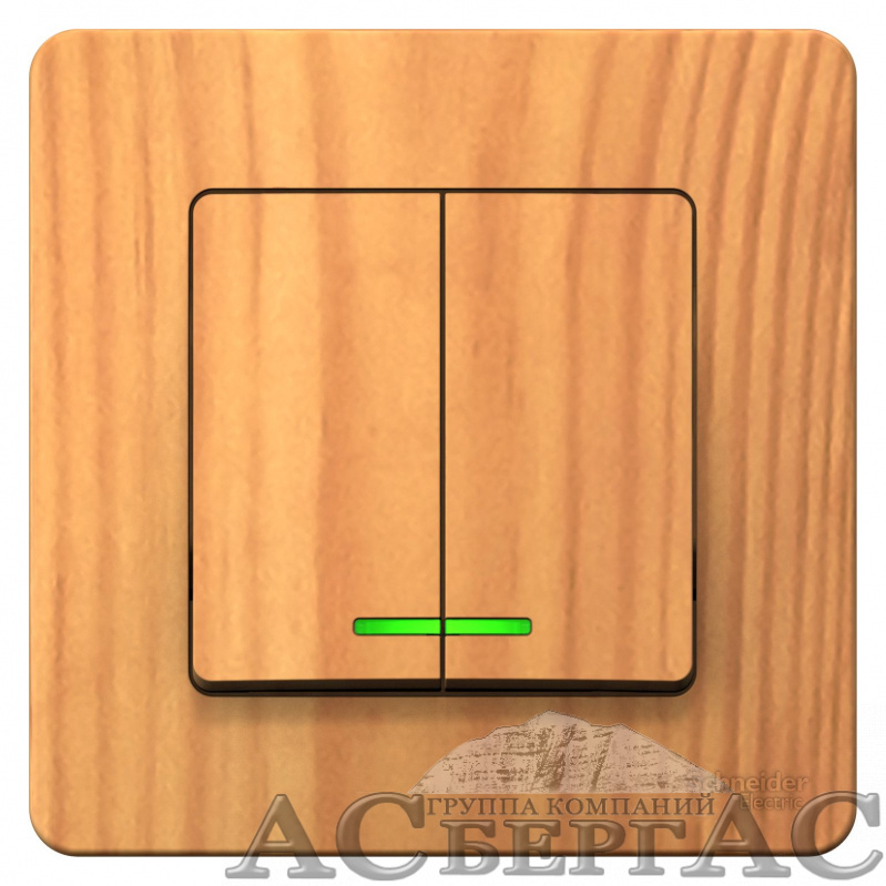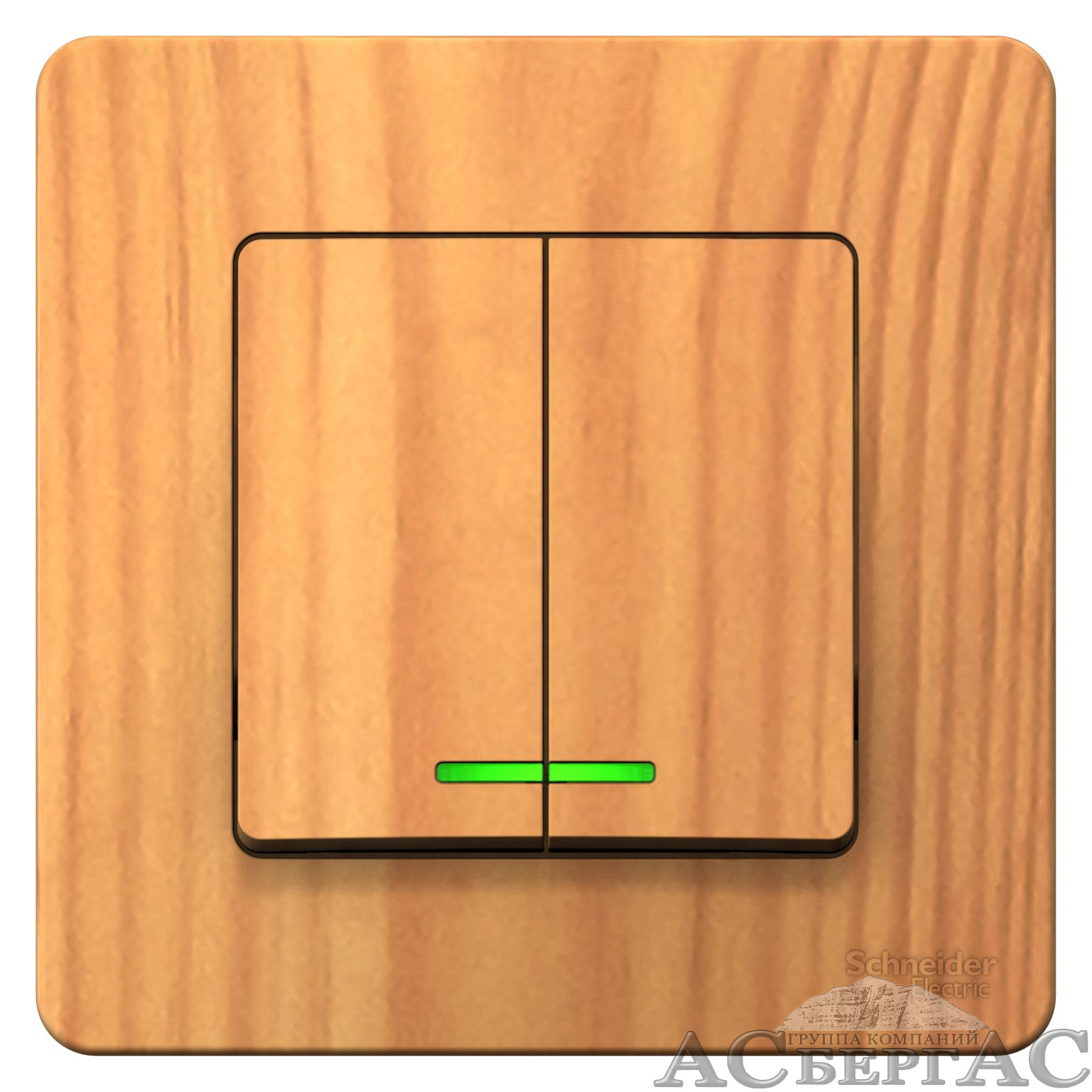 Выключатель 2-клавишный, С/У, (cх.5) с подсв., 10а, 250b (ясень) Blanca Systeme Electric