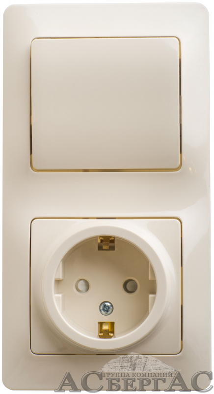 Блок розеточный: Розетка с заземлением со шторками + Выключатель 1-клавишный бежевый Glossa Systeme Electric