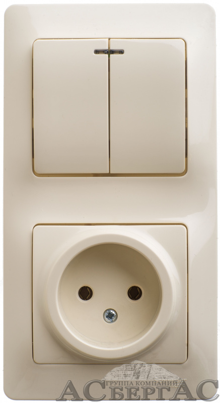 Блок розеточный: Розетка + Выключатель 2-клавишный с подсветкой бежевый Glossa Systeme Electric