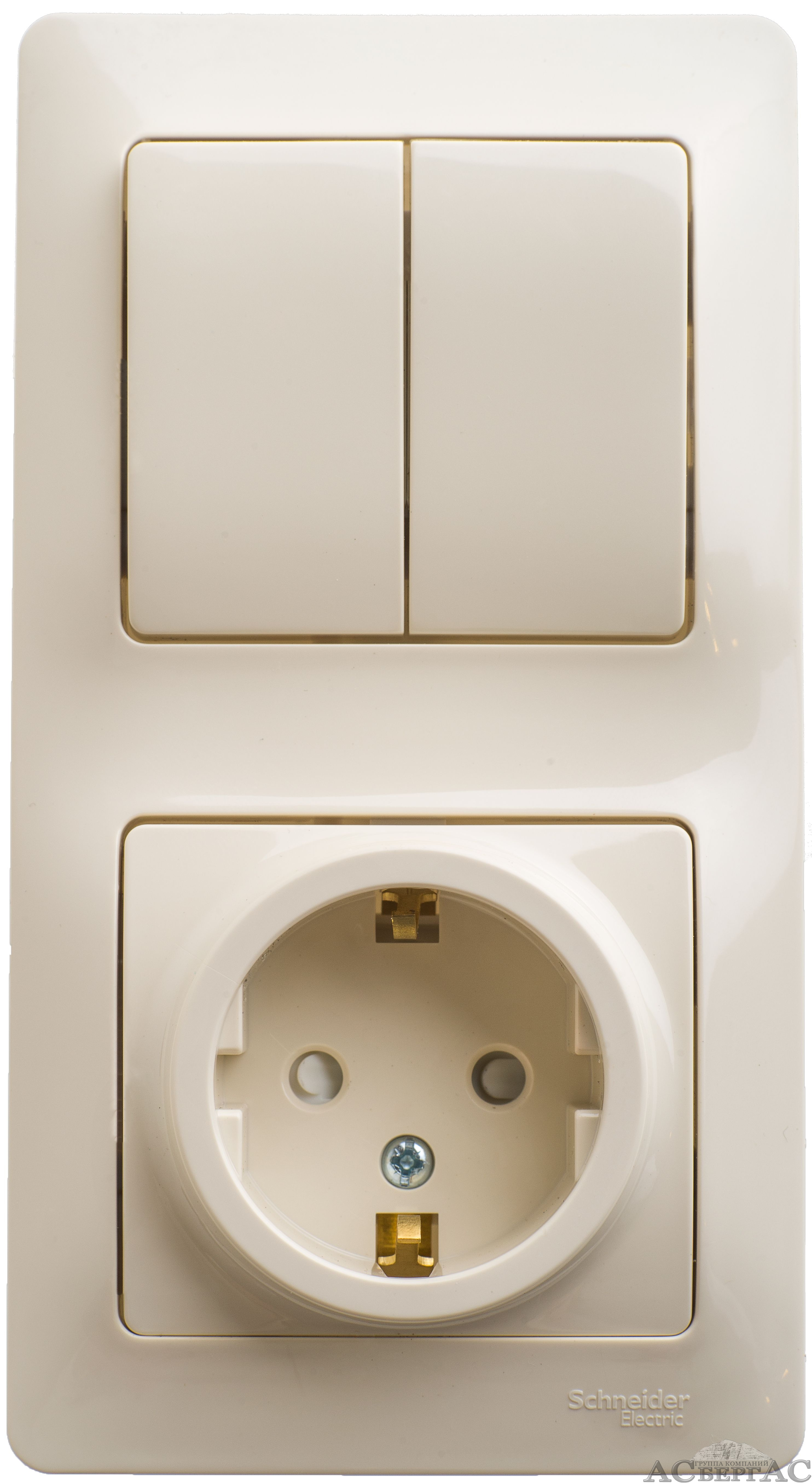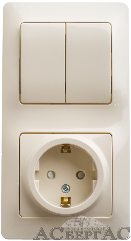 Блок розеточный: Розетка с заземлением со шторками + Выключатель 2-клавишный бежевый Glossa Systeme Electric