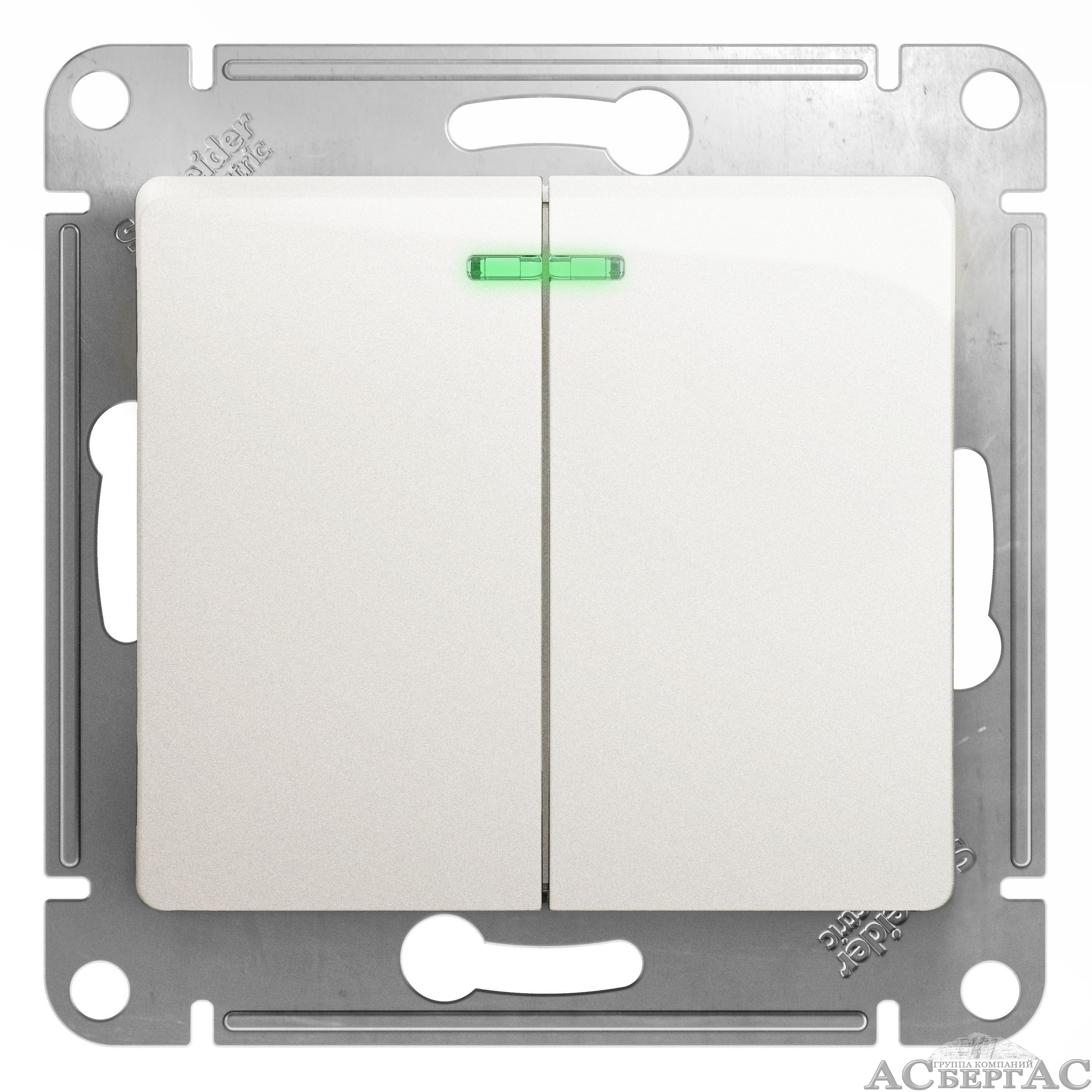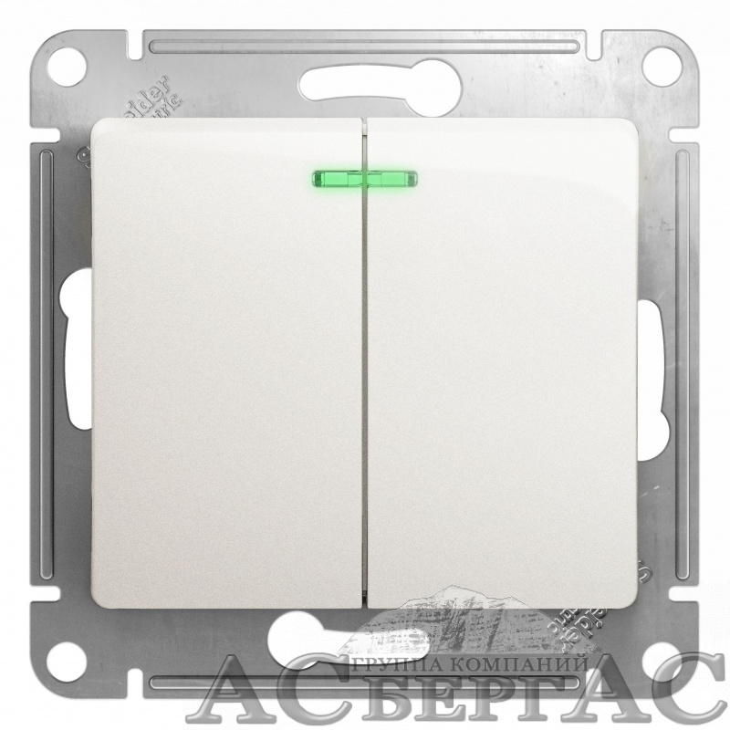 Выключатель 2-клавишный с подсветкой, сх.5а, 10АХ, механизм (перламутр) Glossa Systeme Electric