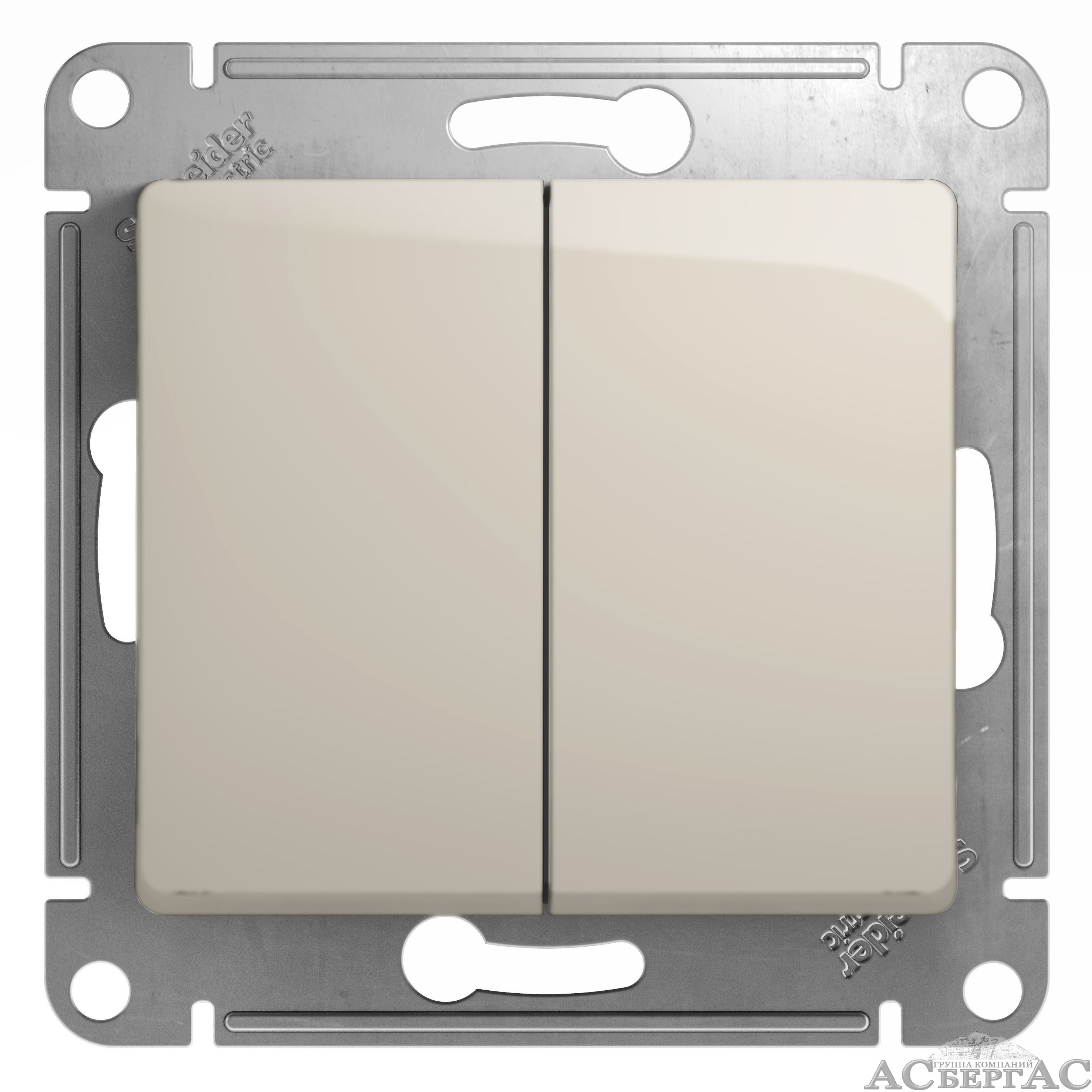 Переключатель 2-клавишный,сх.6,10ax, механизм (молочный) Glossa Systeme Electric