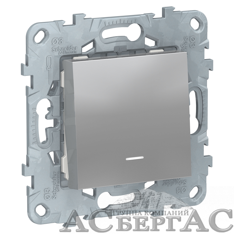 Выключатель 1-клавишный с подсветкой, сх.1а (алюминий) Unica New Schneider Electric