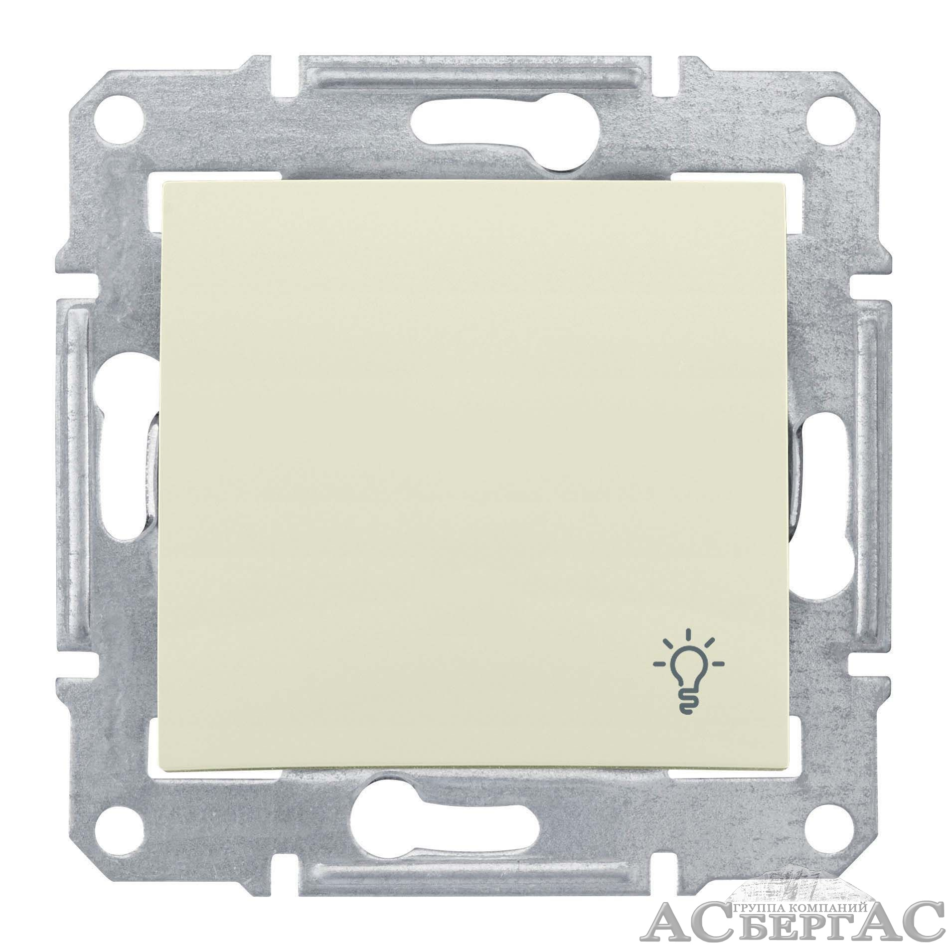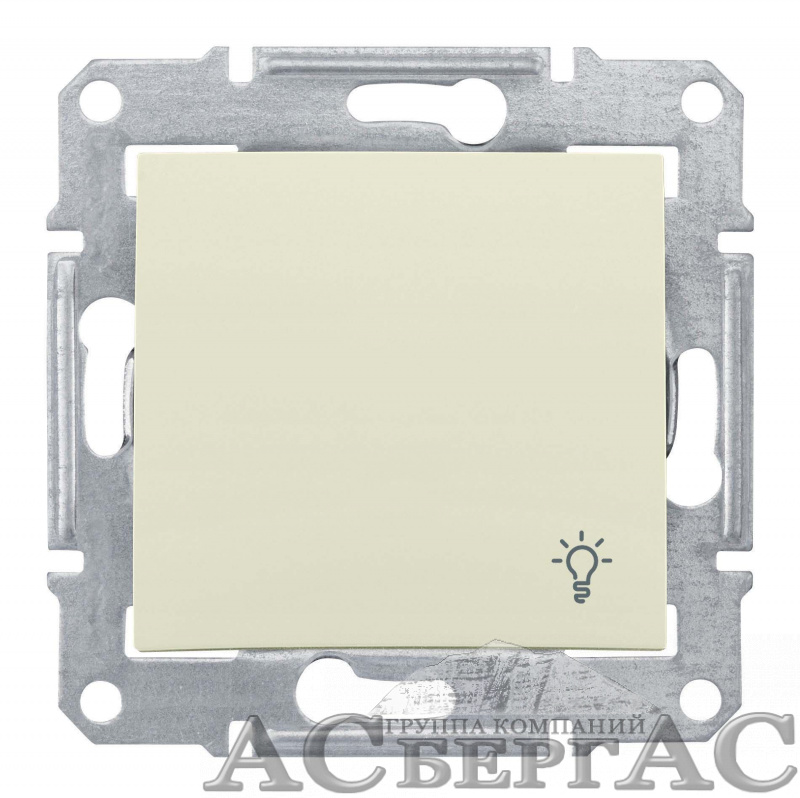 Выключатель 1-клавишный, кнопочный с симв. "свет", IP44, сх. 1, 10а, 250В (бежевый) Sedna Schneider Electric