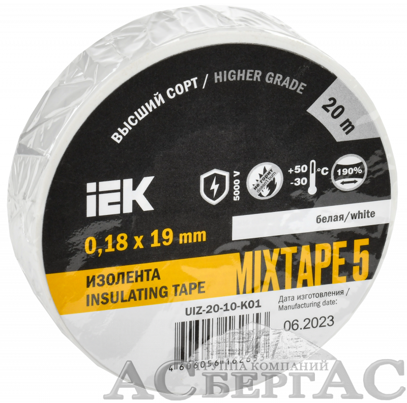 Изолента 0,18х19мм белая (1шт-20м) ИЭК