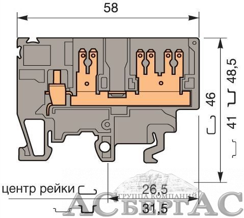1SNTYCO115279R0200 Клемма M4/6.3G винт 4мм.кв. винтовой зажим 4 мм.кв., 1 quick connect (fTYCOst on) 6,3x0,8 мм, 2 quick connect 6,3x0,8 мм TYCO