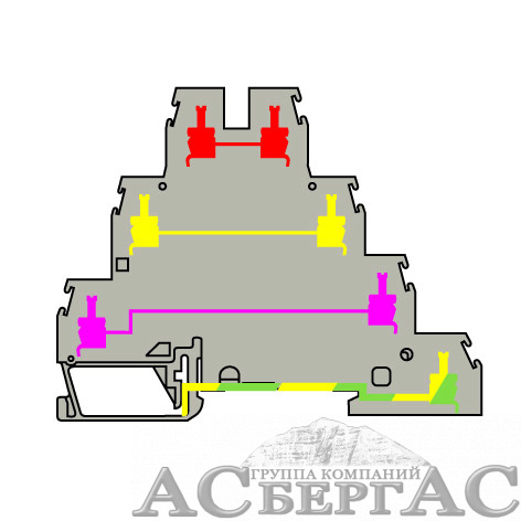 D4/6.T3.P Клеммник 4мм.кв.-3 сквозные цепи + 1 электрически заземленных на DIN-рейку TYCO