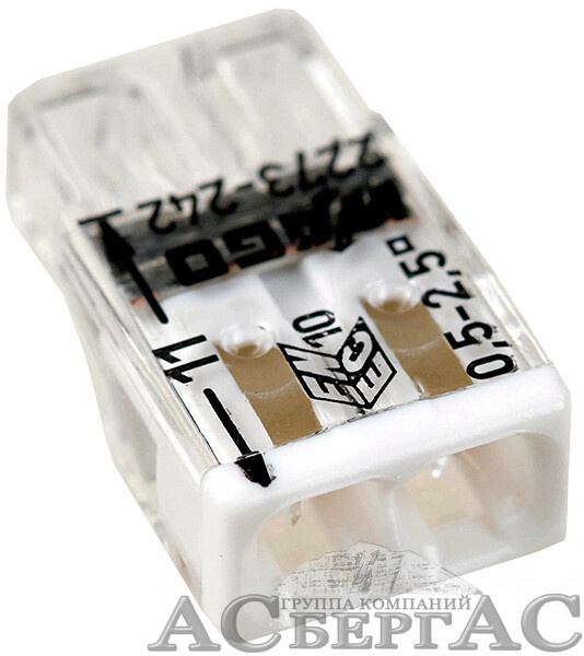 Клемма на 2 проводника 0.5-2.5 мм² (1упак-100шт) (с пастой для меди и алюминия) WAGO