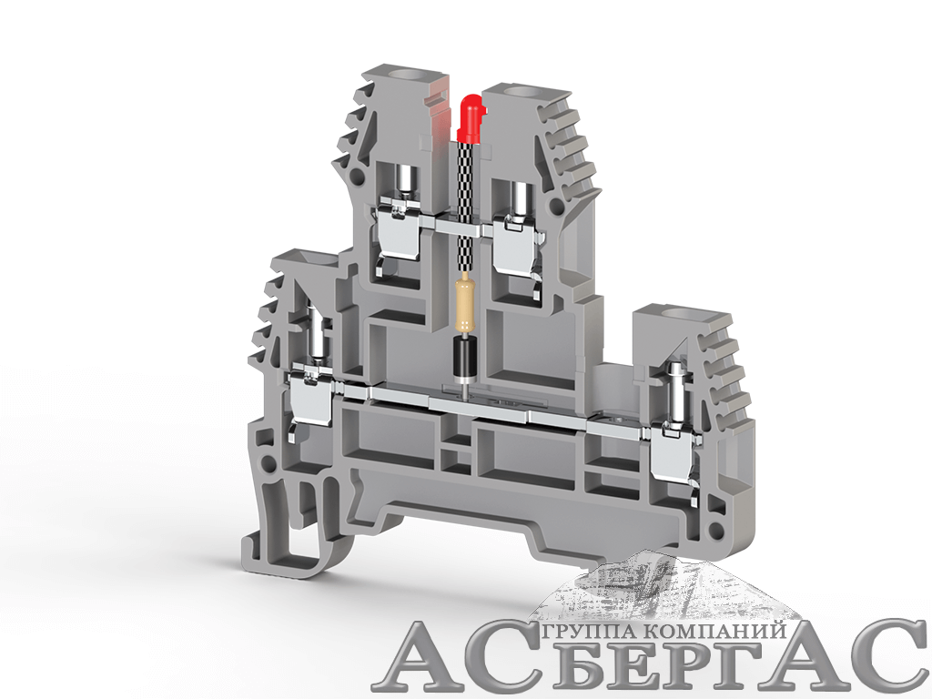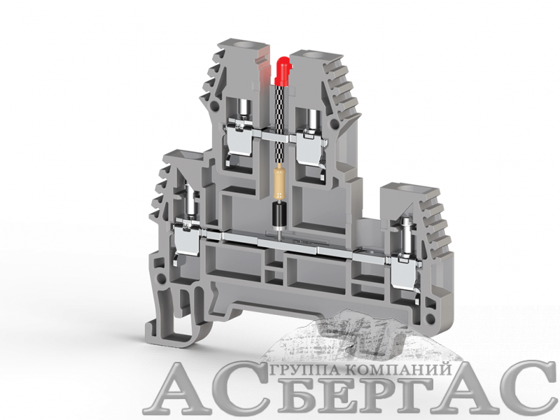 PIK2,5 NLD 24VDC Клеммник 2-х ярусный, 2,5 мм.кв., с индикацией 24 VDC, (серый) Klemsan