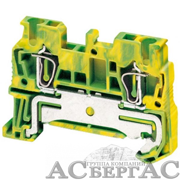 Клеммник пружинный, с заземлением на DIN-рейку 2,5мм², 2 точки подключения (жёлто-зелёный) Schneider Electric
