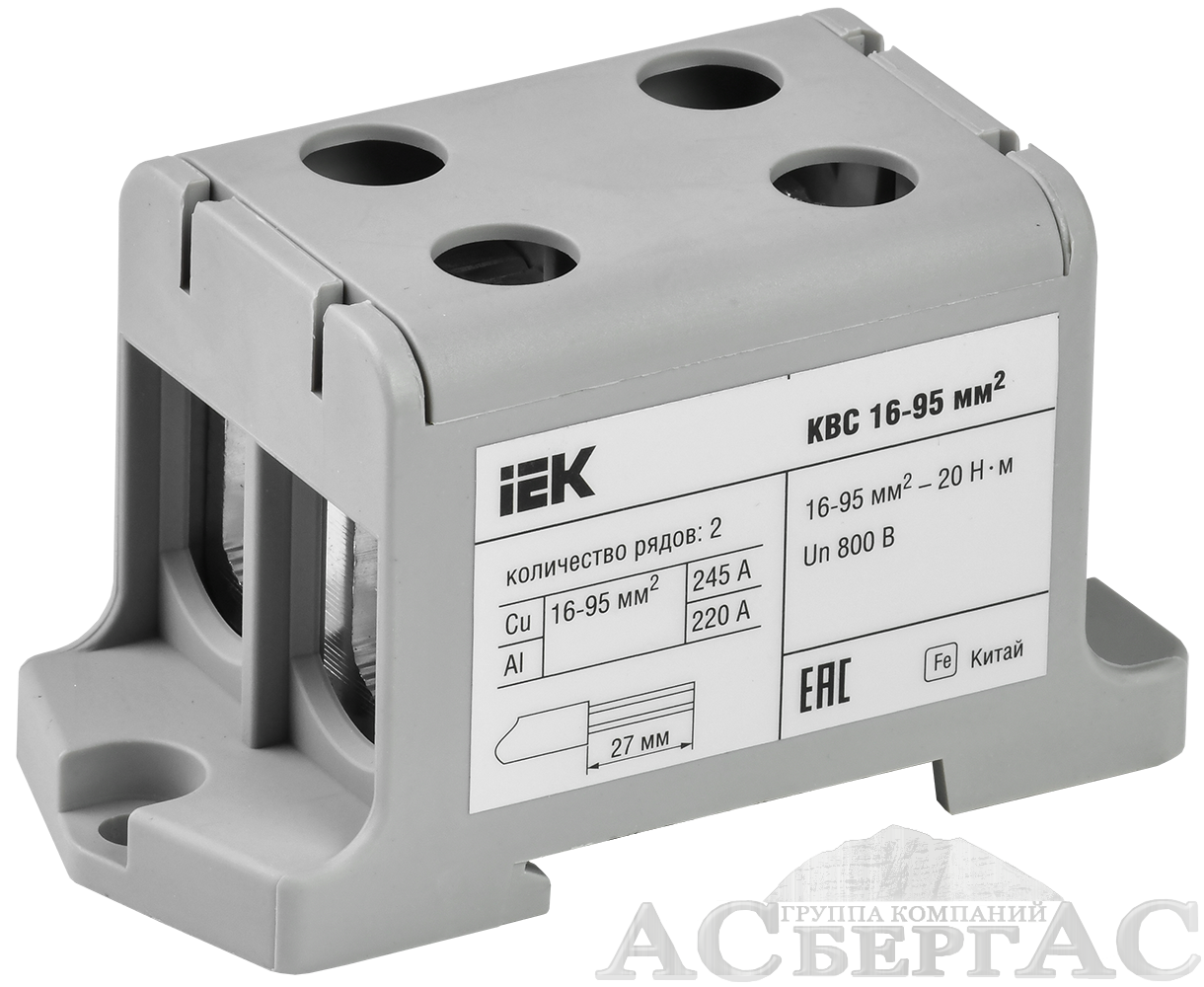 КВС 16-95 Клемма вводная силовая 16-95 мм² 2-х рядная (серая) ИЭК