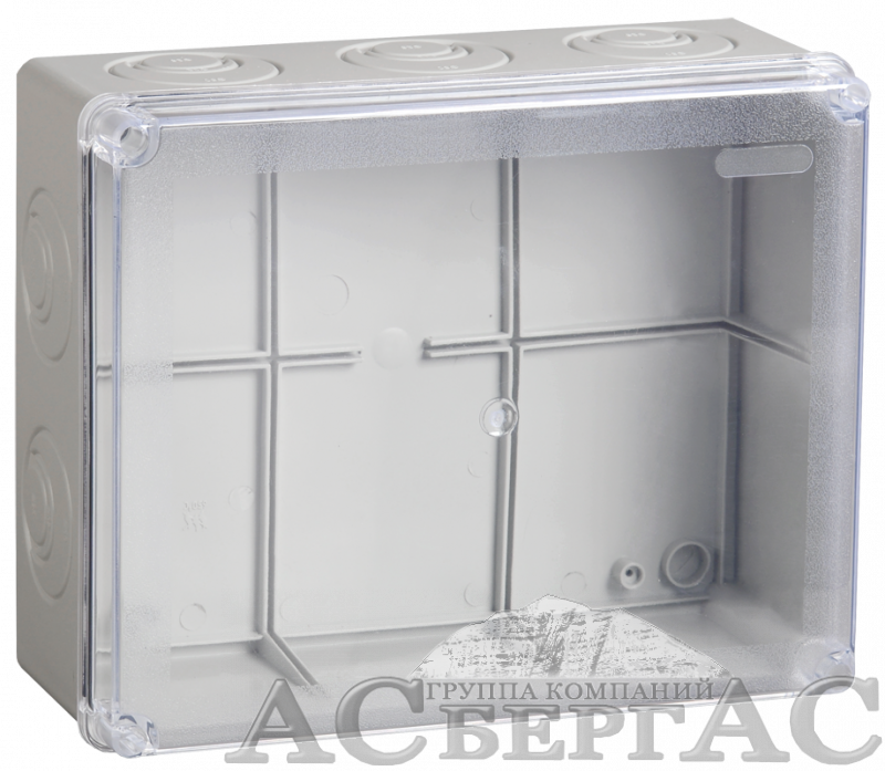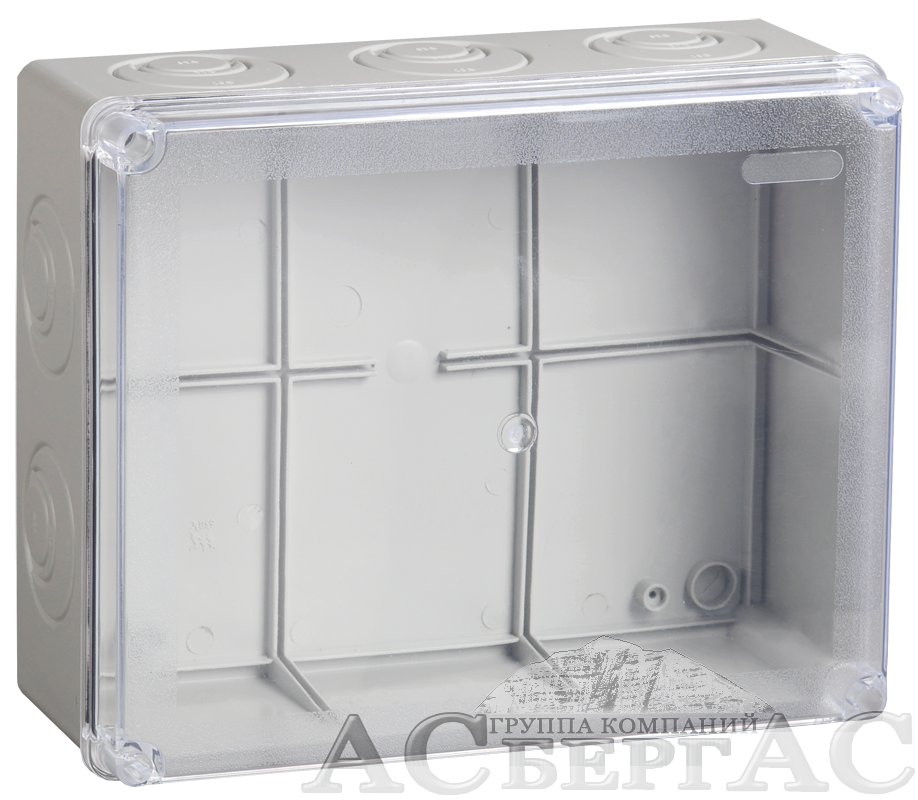 КМ41276 Коробка распаячная для о/п 240х195х90мм белая (RAL7035, прозр. кр., кабельные вводы 5 шт) IP55 ИЭК