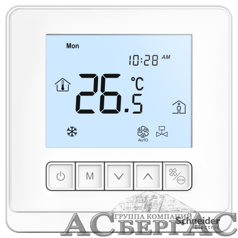 Термостат комнатный цифровой, 0-10в для 2-тр.фанкойла бел ~24в Schneider Electric