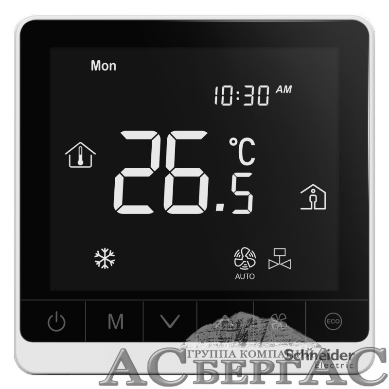 Термостат комнатный цифровой, вкл/выкл для 4-тр.фанкойла ч/б ~230в Schneider Electric
