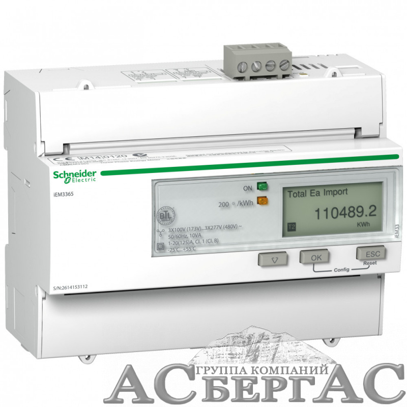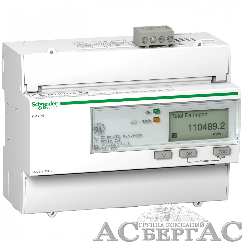 Поверенный счетчик 3-ф актив-реакт iEM3365 125А 4Т. 1DI/1DO, по 4 квадр., BACnet Schneider Electric