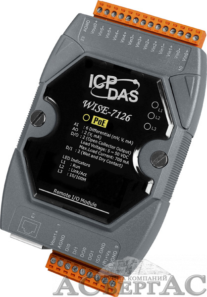 Web-программируемый контроллер, 16-bit CPU, 6хAI, 2хAO, 2xDI, 2xDO, PoE, Modbus TCP ICP DAS