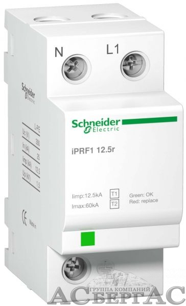 iPRF1 12.5r Ограничитель перенапряжения, тип 1+2, 12.5kА, 230В, 1Р+N Schneider Electric