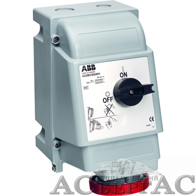 232 MVS6WH Розетка для тяжелых условий с выключателем и механической блокировкой 232MVS6WH, 32A, 2P+E, IP67, 6ч ABB