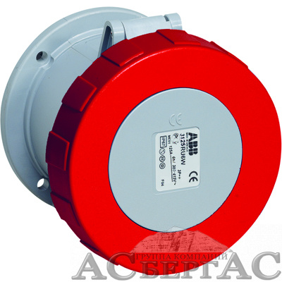 363 RU6W Розетка панельная прямая, 63A, 3P+E, IP67 ABB