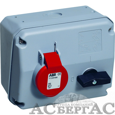 316 MHS4 Розетка с выключателем и механической блокировкой 316MHS4, 16A, 3P+E, IP44, 4ч ABB