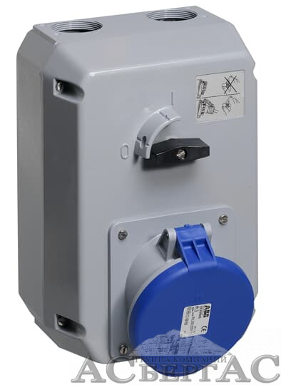 263 MM6 Розетка металл. с выключателем и механической блокировкой 263MM6, 63A, 2P+E, IP44, 6ч ABB